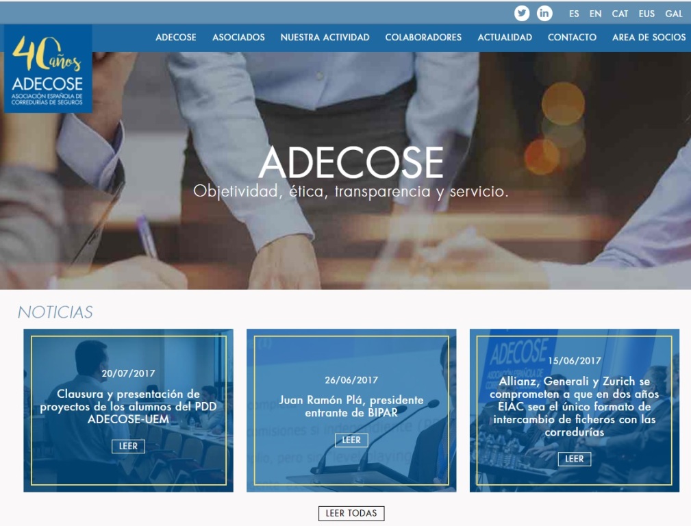 Adecose ha lanzado su nueva web, "más funcional, limpia e intuitiva", que permite a sus socios acceder con facilidad desde cualquier dispositivo móvil y disponer de la información que necesiten de manera clara y ordenada. La asociación resalta que la web tiene un diseño modular y limpio "con páginas por las que es fácil navegar y en la que la información relevante está accesible a un golpe de vista". Bajo diseño responsive, la web detecta el dispositivo usado y ajusta automáticamente el diseño de la página y la resolución al tamaño de la pantalla.