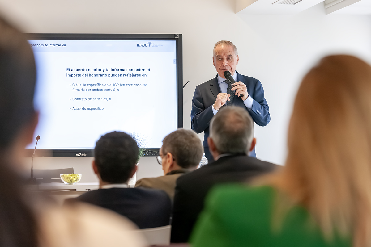 El director de Fundación Inade, Adolfo Campos, participó en el VIII Encuentro de Corredores organizado por el Colegio de Valencia. En su ponencia profundizó en las peculiaridades de la remuneración de los corredores de seguros analizando aspectos como los honorarios y comisiones.