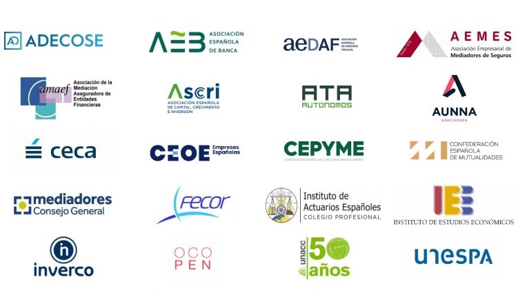 Las otras 18 asociaciones firmantes son Adecose, AEB, Aedaf, Amaef, Ascri, ATA, CECA, CEOE, Cepyme, la Confederación Española de Mutualidades, el Consejo General de Colegios de Mediadores de Seguros, Fecor, el Instituto de Actuarios Españoles, el Instituto de Estudios Económicos, Inverco, Ocopen, Unacc y Unespa.