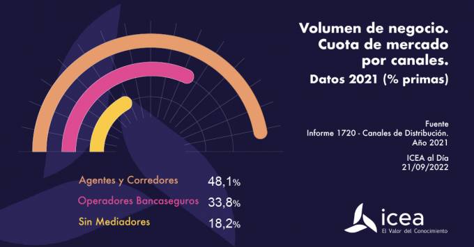 Tanto Vida como No Vida se mantienen estables en cuanto a su comercialización a través de los diferentes canales de distribución. En Vida, el 62% del negocio esta intermediado por los operadores de bancaseguros, "si bien en los últimos años adquiere mayor relevancia los agentes y corredores", señala ICEA. En el total No Vida, si se compara con el año 2010 "se aprecia un crecimiento en la cuota de mercado de agentes y corredores, aunque se viene observando un descenso de este canal desde el año 2000".
