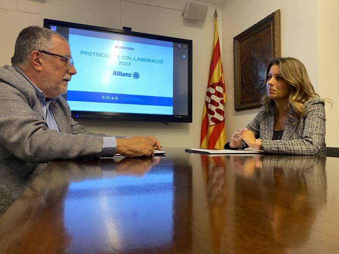 Silvia Nogués, directora comercial de Allianz, y Jordi Triola, presidente de la institución colegial, han firmado el protocolo de colaboración para este 2023.
