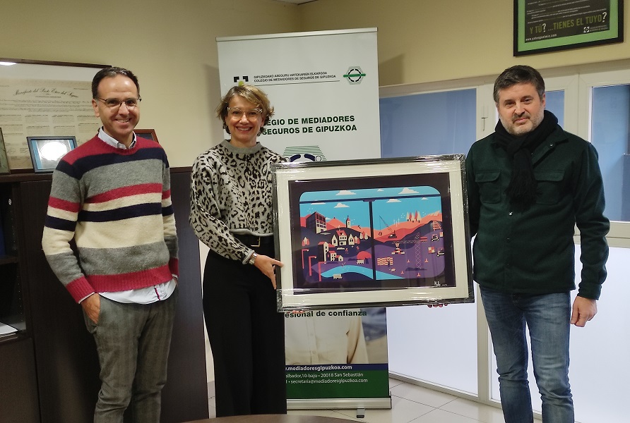 Durante el encuentro obsequiaron al colegio de mediadores con un cuadro conmemorativo que entregaron al presidente del Colegio, Xabier Saizar.