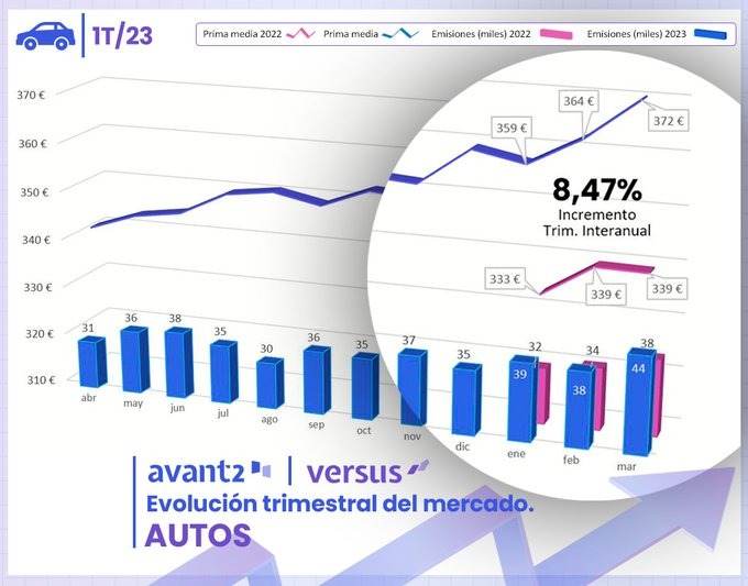 Recoge esa evolución Versus Analytics sobre un volumen de más de 160.000 pólizas emitidas en el segundo trimestre. Autos cerró con más de 113.000 emisiones, un 8,13% más que en el mismo trimestre de 2022. La prima media alcanzó los 387 euros en junio, el valor más alto de los últimos 10 años de cotización. La contratación de Hogar creció un 28% frente a un año antes y la prima media se situó en 238 euros.