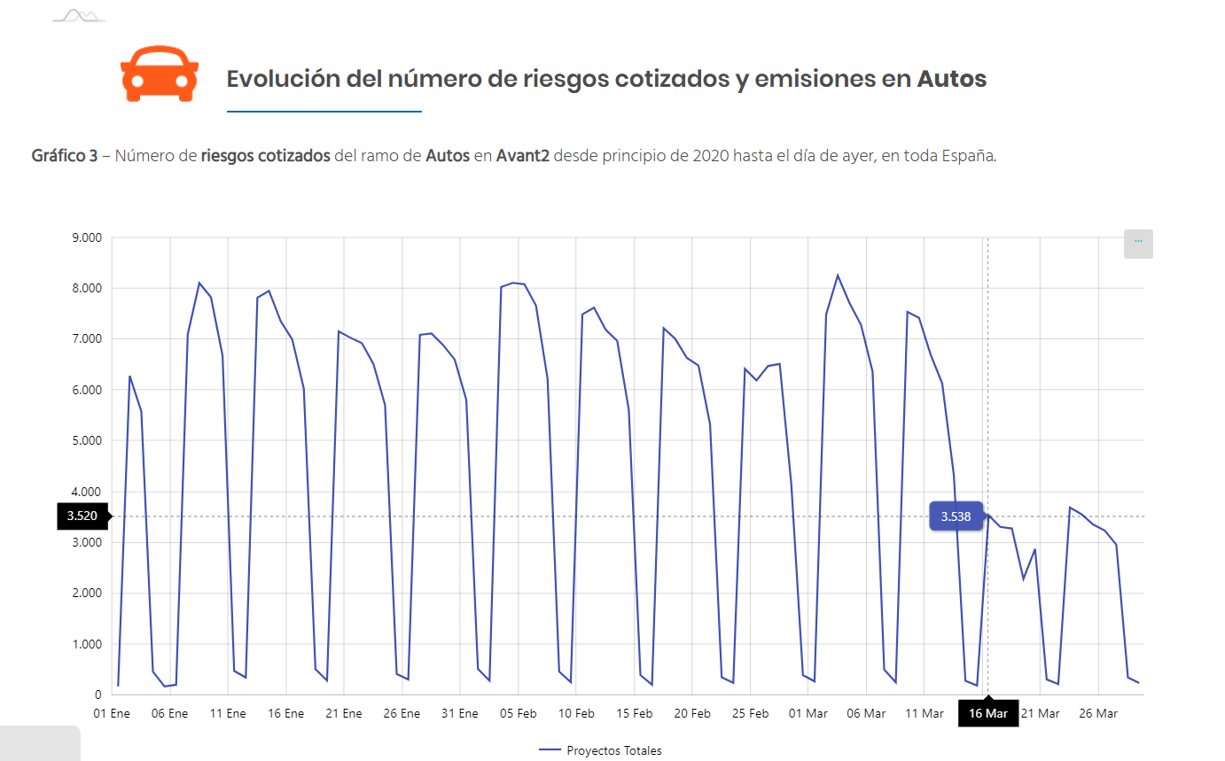 Entre las primeras conclusiones, Codeoscopic destaca que las cotizaciones han caído un 51% desde que se decretó el estado de alarma por la rápida expansión del coronavirus, mientras que las emisiones de pólizas han experimentado un descenso cercano al 52%.