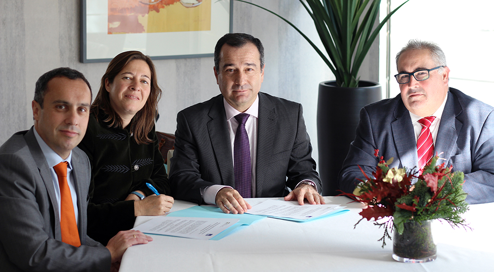 El acuerdo lo han suscrito Francisco Javier Tena, director territorial sur de AXA; y los presidentes de los tres Colegios de Mediadores: David Salinas (Córdoba), Javier García-Baquero (Huelva) y Elena Romero (Sevilla).