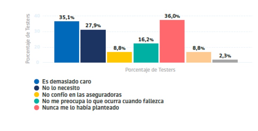 Por otro lado, entre los encuestados que no disponen de este tipo de pólizas, el principal motivo para no contratarlo es "no habérselo planteado nunca" (36%). Un 35,1% alude a razones de precio, mientras el 27,9% considera que no necesita un producto asegurador de estas características.