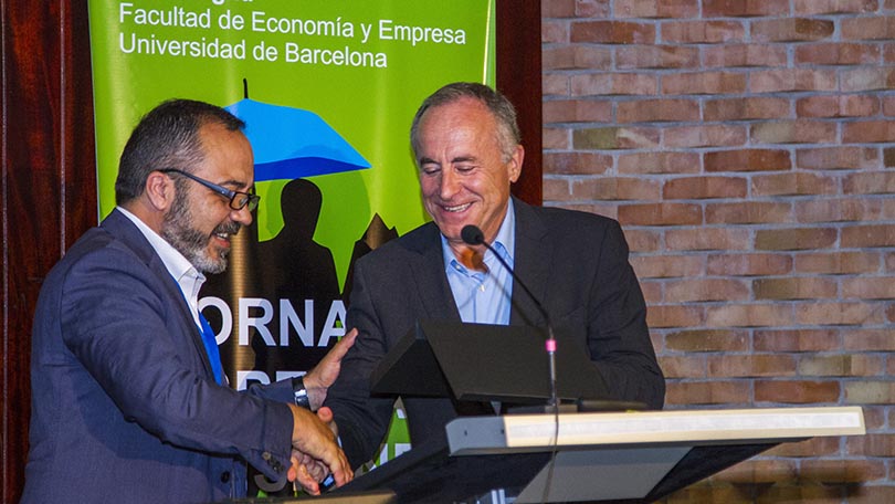 Francesc Santasusana, presidente del Colegio de Barcelona, recogió el premio 'Gracias' que otorga la Cátedra ICEA-Universitat de Barcelona (UB) de seguros y Fondos de Pensiones. El jurado de este galardón destacó el papel de la institución en la defensa de los derechos de la mediación aseguradora y en la formación de los profesionales.