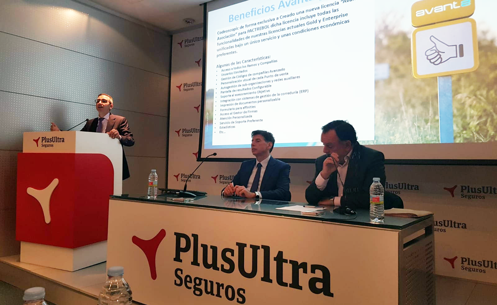 Codeoscopic y Pactrebol han firmado un acuerdo para la integración del multitarificador Avant2 en su red de corredurías y corredores asociados. Un compromiso que amplía la colaboración establecida desde el pasado año con Grupo PACC. Ángel Blesa, director general de Codeoscopic, y José Hernández, director general de Grupo PACC, rubricaron el 6 de febrero el contrato entre ambas partes, en un acto celebrado en la sede de Plus Ultra en Madrid. En la reunión se hizo también una presentación del acuerdo a todos los miembros de Pactrebol.