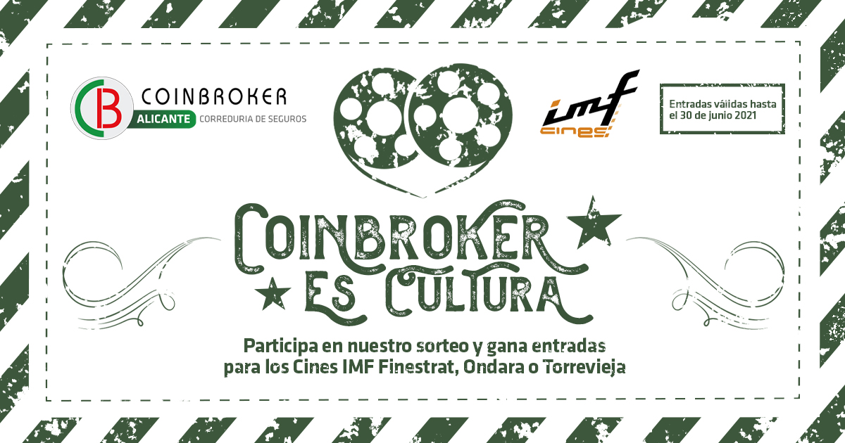 Con el objetivo de apoyar al sector de la cultura, Coinbroker Alicante va a sortear entradas de cine. En concreto, dos lotes de 10 packs que incluirán 4 entradas cada uno de ellos, que se pondrán canjear en los cines IMF de Finestrat, Ondara y Torrevieja.