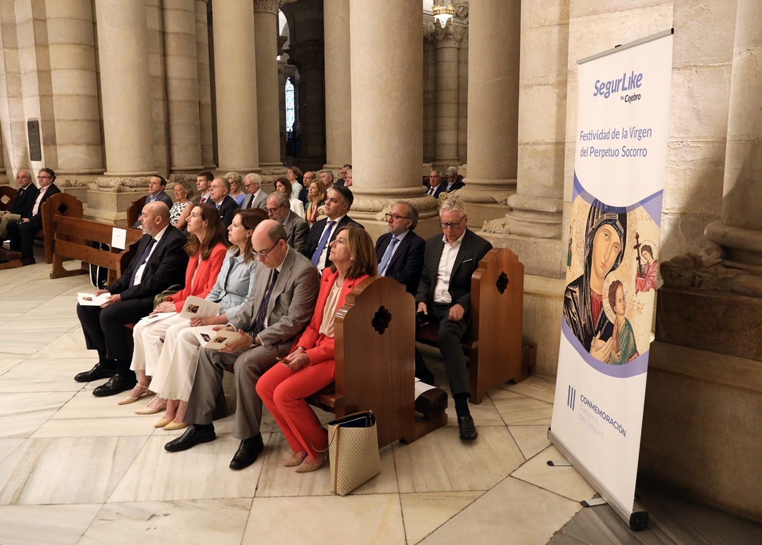 Cojebro ha conmemorado por tercer año consecutivo la festividad de la Virgen del Perpetuo Socorro, Patrona del Seguro, con una Misa en La Cripta de la Catedral de Nuestra Señora de La Almudena como acto central. La ceremonia reunió a más de un centenar de representantes del sector asegurador, entre ellos José Antonio Fernández de Pinto y Eva Mª Lidón (DGSFP), Mirenchu del Valle y Luis Miguel Ávalos (Unespa), Pilar González de Frutos y Alejandro Izuzquiza (Consejo Social de Cojebro), directivos de aseguradoras e instituciones del sector y socios de Cojebro.