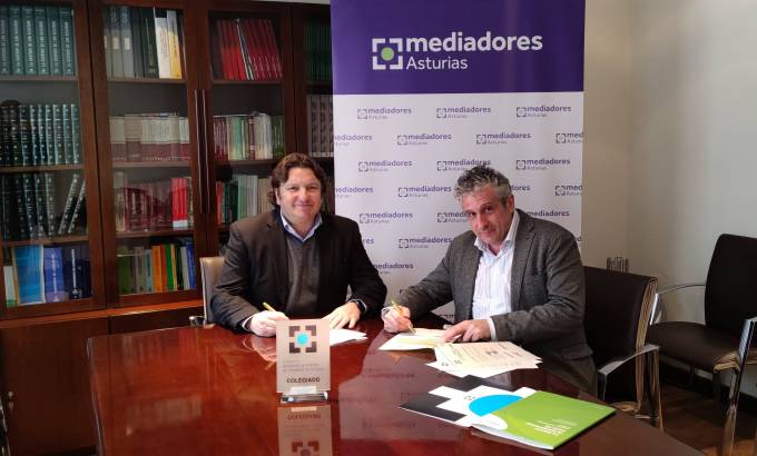 El Colegio de Mediadores de Asturias y DKV Seguros han renovado el acuerdo de colaboración que les une que en esta ocasión tendrá una vocación formativa y así "impulsar la excelencia en el desarrollo profesional de la mediación". El presidente del colegio, Reinerio Sarasúa, y el director provincial de DKV en Asturias y Cantabria, José María Burunat, ratificaron este acuerdo acompañados del vicepresidente de la institución, Ignacio Friera, y la consultora de la red de corredores en DKV, Julia Díaz.