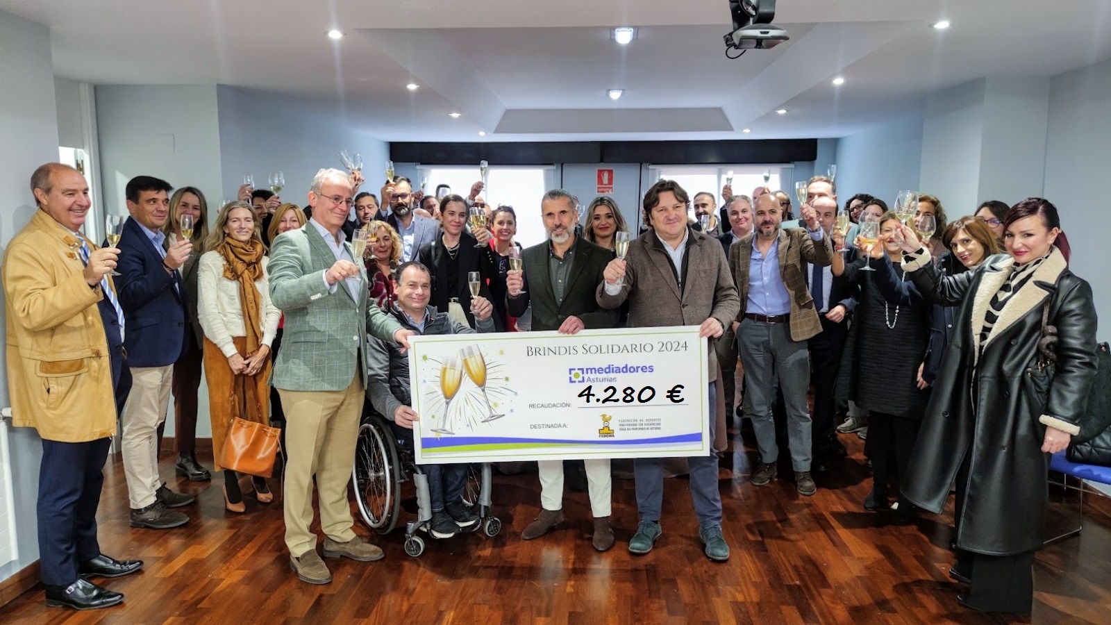 El Colegio de Mediadores de Asturias ha celebrada una nueva edición de su Brindis Solidario donde en esta ocasión ha entregado un total de 4.280 euros a la Federación de Deportes para Personas con Discapacidad Física del Principado de Asturias (Fedema). Esta cifra constituye un récord en la colaboración de los distribuidores de la comunidad.