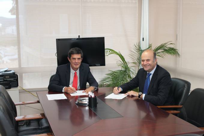 En la firma estuvieron presentes Daniel Salamanca, presidente del Colegio, y Carlos Puig, director de Cataluña y Baleares de la aseguradora.