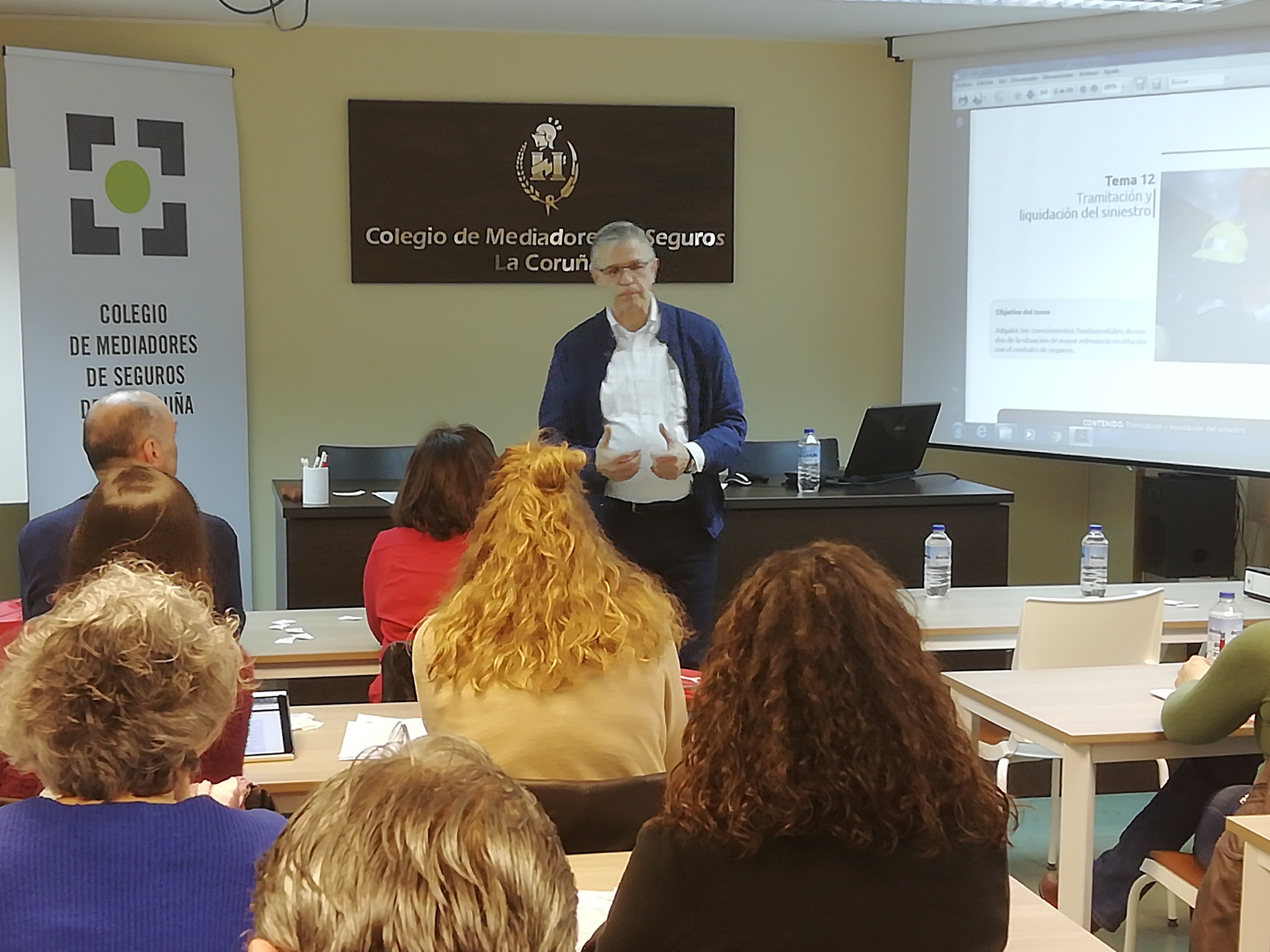 El Colegio de A Coruña continúa impartiendo formación del curso intensivo del Grupo B. En concreto, ha tenido lugar la cuarta clase presencial, a cargo de José Luis Ayestarán, gerente del gabinete Ingeniería y Peritaciones del Noroeste, que ha explicado temas relacionados con la valoración del siniestro y el peritaje.