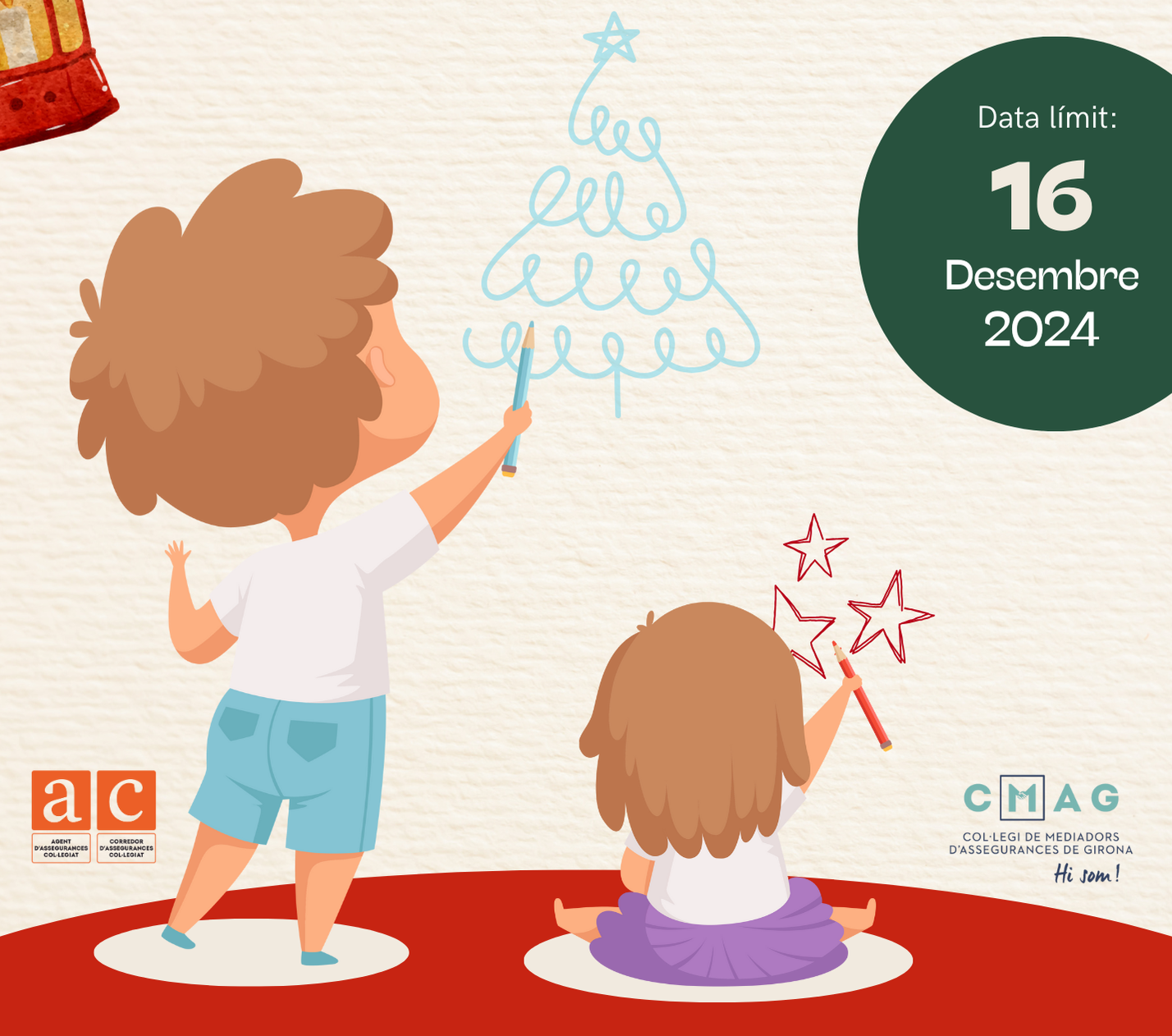 Con motivo de las fiestas navideñas, el Colegio de Mediadores de Seguros de Girona ha convocado una nueva edición, la decimosexta, de su 'Concurso de dibujo infantil'. Este año, el tema elegido es 'Navidad y Reyes' y, como es habitual, los dibujos deberán incorporar también los símbolos Ad'a y Cd'a que identifican a los colegiados catalanes.