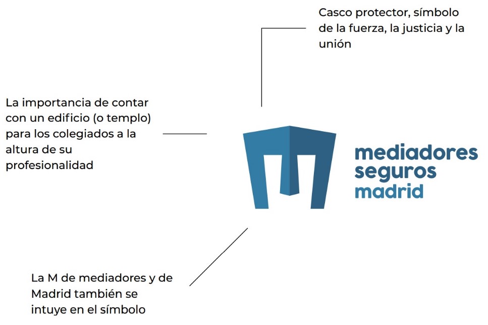El Colegio de Mediadores de Seguros de Madrid ha renovado su imagen corporativa, con el objetivo de "modernizar y adaptar la visión del Colegio a la nueva realidad", según reza en un comunicado. El nuevo logotipo representa a la vez 4 esencias: un casco, de la diosa Atenea y que sugiere los valores propios de la mediación (protección, sabiduría, progreso y justicia; un templo, que otorga a los mediadores colegiados la importancia de contar con una casa común un punto de reunión y encuentro para todos; la letra M, inicial de mediadores y de Madrid; y la Puerta de Alcalá, emblema colegial que distingue a los colegiados de Madrid.