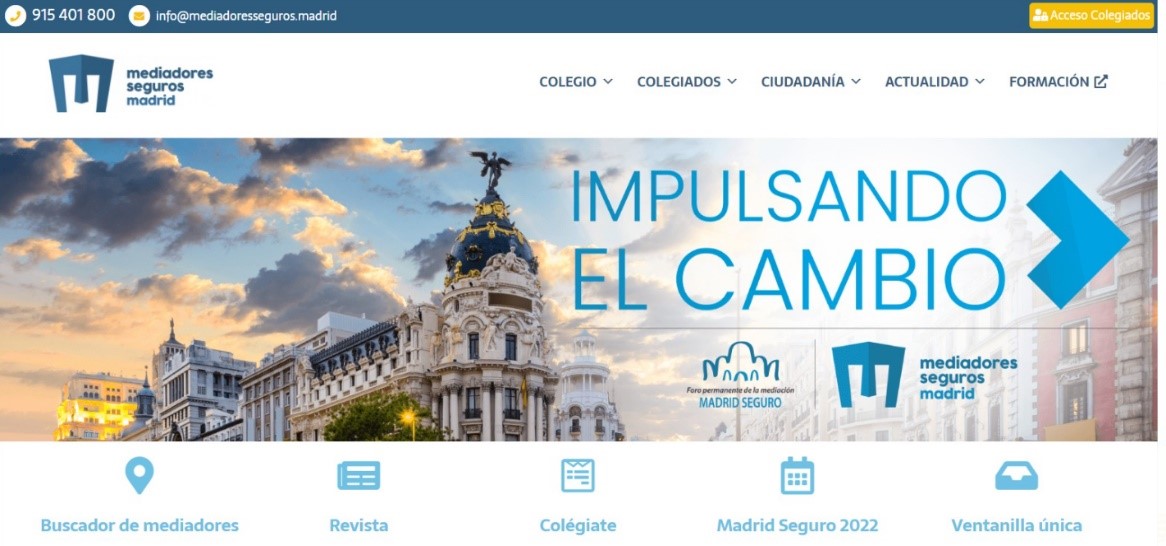 Además, y coincidiendo con el Foro Madrid Seguro, el colegio madrileño ha lanzado su nueva web. La primera novedad tiene que ver con el cambio de dirección, pasando de 'mediadoresdesegurosdemadrid.com' a 'mediadoresseguros.madrid'. Se acorta así la dirección ya que el objetivo de la institución era contar con una "más fácil de escribir, de entender, de memorizar" y poniendo el foco en tres conceptos: mediadores, seguros y Madrid.