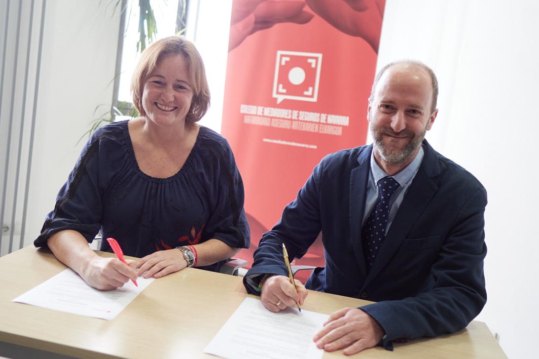 El Colegio de Navarra y Mutuavenir han renovado su acuerdo de colaboración para continuar impulsando el desarrollo de la mediación profesional en la Comunidad foral y reforzar los lazos entre la entidad y los mediadores colegiados. Firmaron la renovación Javier García Huarte, nuevo director de la sucursal de la compañía en Pamplona, y la presidenta del Colegio, María Castañeda.