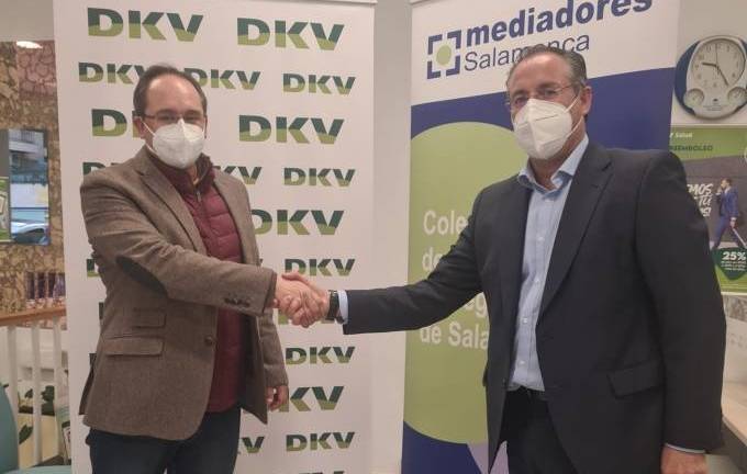 El Colegio de Mediadores de Salamanca ha renovado sus protocolos de colaboración con DKV Seguros. Ambas entidades afianzan así la renovación existente y que tendrá aplicación en la participación de la aseguradora en el Curso de Nivel 1 que imparte la institución. La firma del acuerdo corrió a cargo del presidente del colegio, Rubén Almaraz, y el director de la sucursal de la ciudad de la aseguradora, Ismael Sansegundo.
