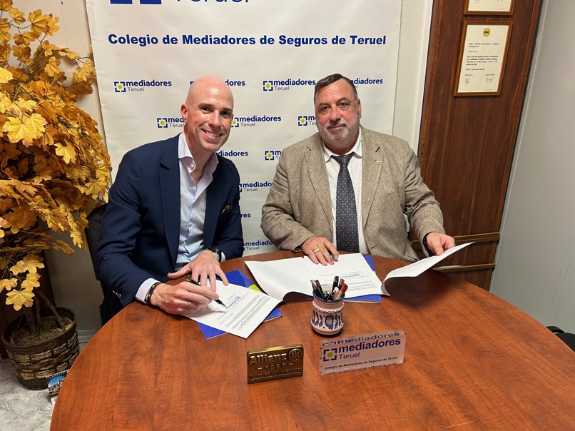 El Colegio de Teruel y Allianz han formalizado un acuerdo de colaboración para reforzar sus relaciones institucionales y contribuir al crecimiento profesional del colectivo de mediadores en la provincia. Lo han sellado el presidente del Colegio, Victhor Cabetas, y el director de zona de Allianz, José Manuel Alastuey, y permitirá impulsar actividades formativas, jornadas técnicas y otras iniciativas.