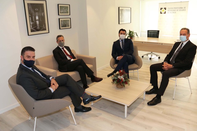 El Colegio de Mediadores de Seguros de Valencia ha recibido la visita institucional de una delegación de Santalucía compuesta por David Pérez, director Territorial Levante-Baleares, y Miquel Moreno, nuevo director del canal Corredores de la Territorial.