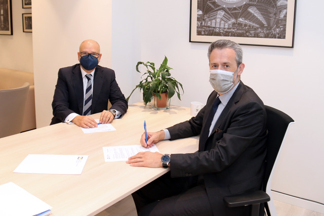 El Colegio de Valencia y SegurCaixa Adeslas han ampliado su acuerdo de colaboración, mediante la firma por parte del presidente colegial Jorge Benítez, y el director regional Comercial Levante Baleares de la aseguradora, Luis Ballester.