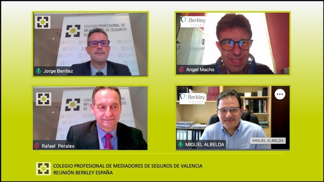 En el encuentro telemático también estuvo presente en nombre de la entidad Ángel Macho, director de Negocio de Berkley España y por parte del Colegio su presidente, Jorge Benítez, y el gerente, Rafael Perales. Benítez destacó el carácter de entidad especialista de la aseguradora, "algo que sin duda enriquece el panel de colaboradores del Colegio". Además puso en valor la renovación por segundo ejercicio consecutivo "en un contexto como el de la pandemia, que no ha permitido el desarrollo del protocolo tal como habíamos previsto".