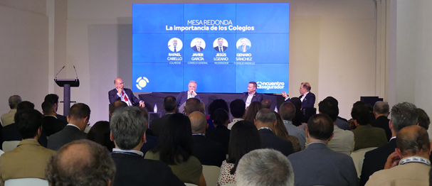 Una de las mesas redondas, sobre 'La importancia de los Colegios, contó con Jesús Lozano (vicepresidente de Colmedse), Javier García (presidente del Colegio Jaén y vicepresidente del Consejo General), Genaro Sánchez (presidente del Colegio de Granada y del Consejo Andaluz) y Rafael Cabello, que trataron el papel fundamental de los colegios en la profesionalización y apoyo a los mediadores.