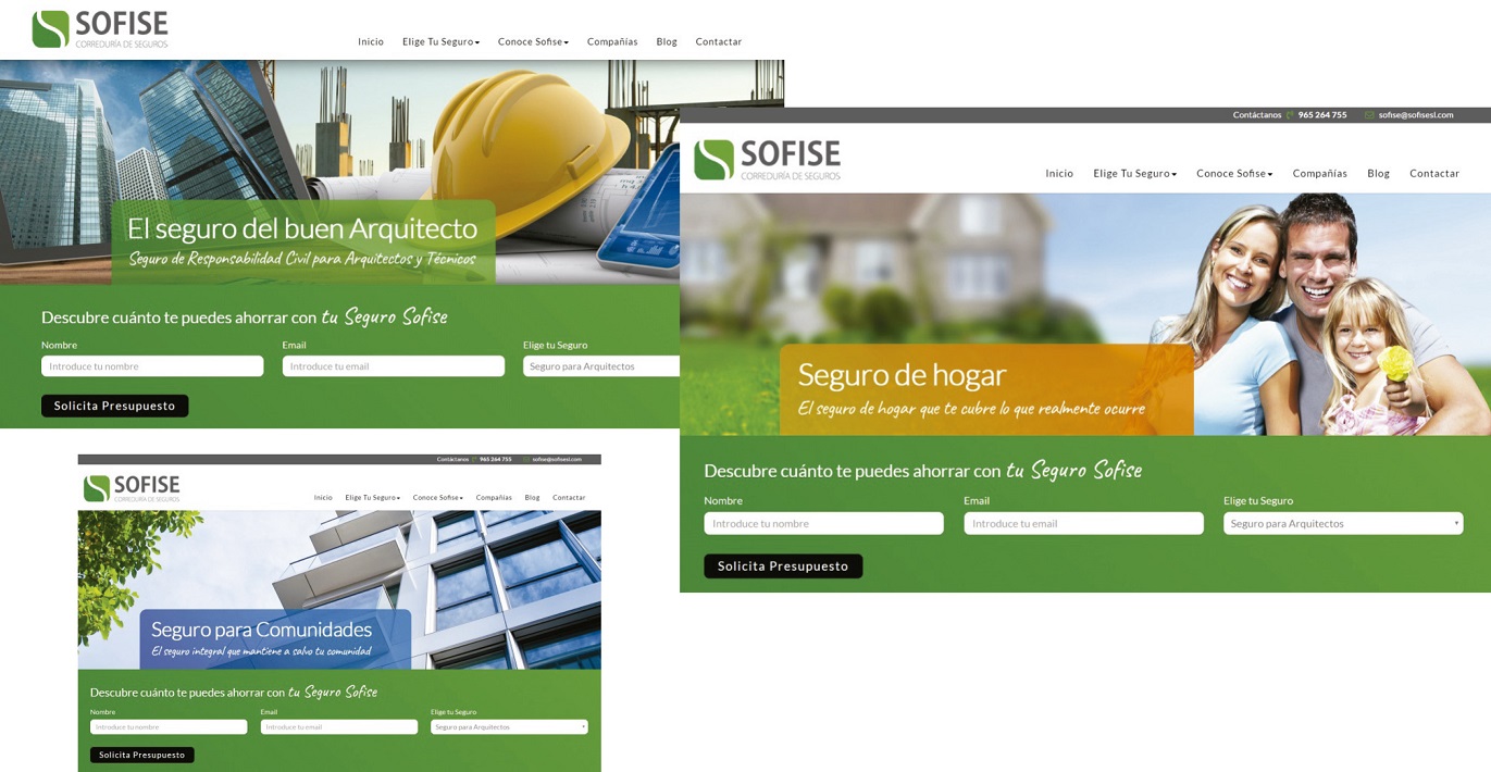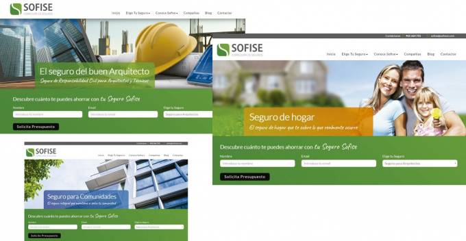 Sofise Correduría de Seguros ha adecuado tanto su web inicial (www.sofise.es) como su landing page principal (www.seguro-arquitectos.es) para dar respuesta a la tendencia mobile y digital. Las nuevas páginas web se basan en una plataforma responsive que permite ajustar su diseño y contenido en función del dispositivo y del sistema operativo, adaptando automáticamente su tamaño, orientación y resolución en la pantalla.