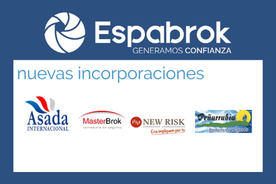 Durante el mes de septiembre Espabrok ha sumado 4 nuevas incorporaciones de corredurías a su red de profesionales: Asada Internacional, Masterbrok, New Risk y Peñarrubia, ubicadas en Sevilla, Málaga, Barcelona y Ciudad Real respectivamente. Para Luis López Visús, director general de Espabrok, "seguimos creciendo de manera sostenida, con profesionales de la mediación con una clara ambición de crecer en negocio y ampliar su oferta de servicios a sus clientes. Las incorporaciones del mes de septiembre refuerzan nuestra capilaridad por toda la geografía, así como nos permiten abrir nuevas zonas como es el caso de Ciudad Real con el gran equipo de Peñarrubia, correduría referente en su zona".