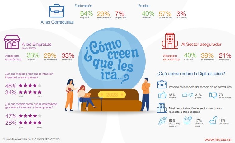 Más dudas tienen los corredores con la evolución que experimentarán en 2023 las empresas de sus clientes. De hecho, 1 de cada 3 vislumbra que la situación de estas compañías empeorará en este nuevo curso mientras que un 29% cree que se mantendrá igual. Solo un 37% vaticina que puede haber mejoras.