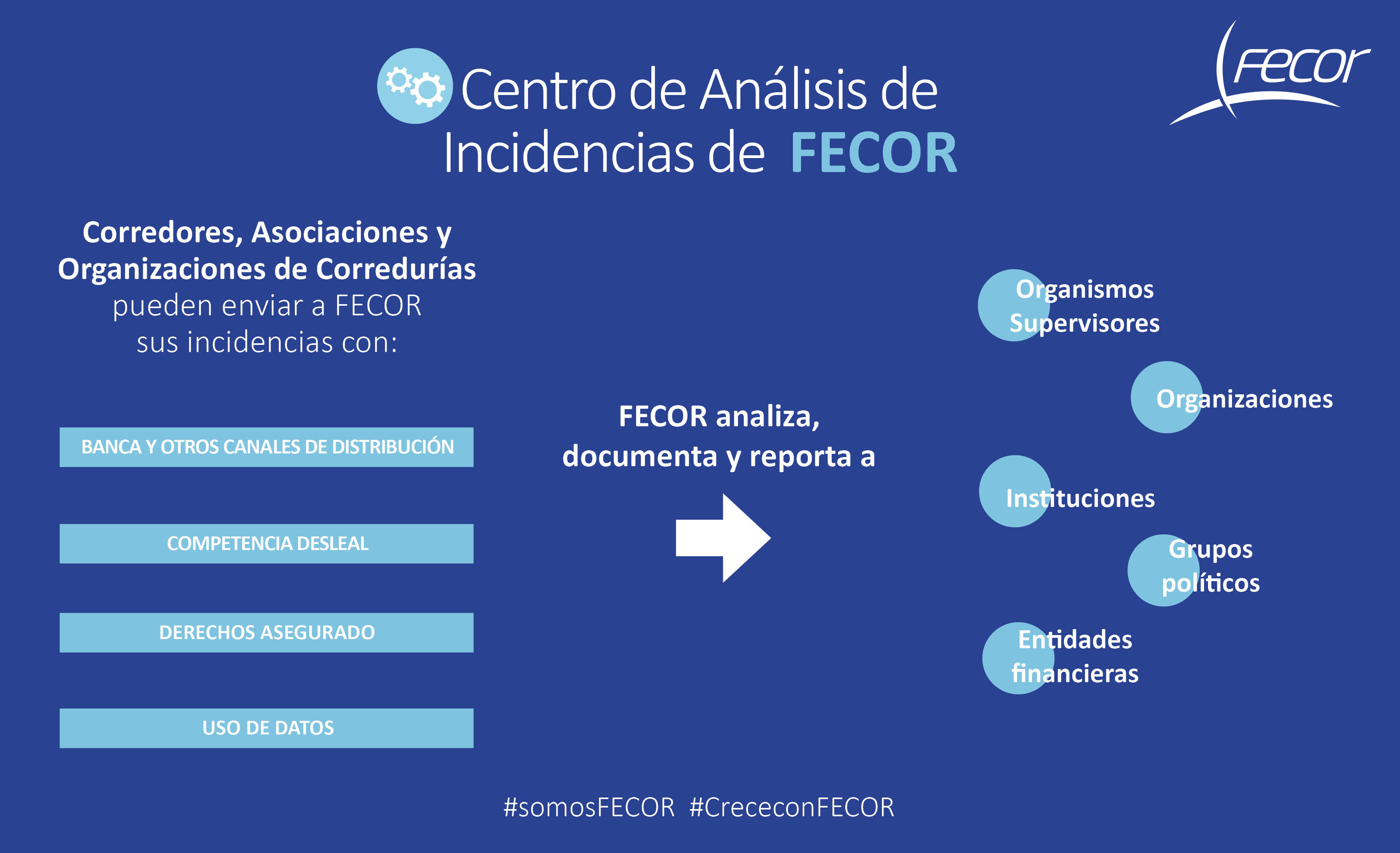 Fecor ha puesto en marcha el Centro de Análisis de Incidencias, una herramienta con la que pretende combatir las irregularidades que afectan al desarrollo profesional del corredor de seguros. La Federación explica que, con ella, no solo dará voz a sus asociaciones y a sus miembros a título individual, sino a todo el colectivo ante cualquier situación contraria a las buenas prácticas.
