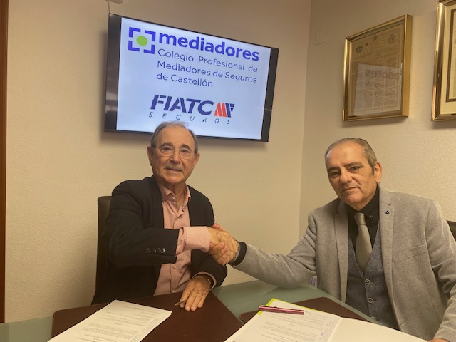 Francisco García Pagan, director de la sucursal de Fiatc, y Antonio Fabregat, presidente del Colegio de Castellón, firmaron la renovación de su protocolo de colaboración con en un acto celebrado en las instalaciones colegiales.