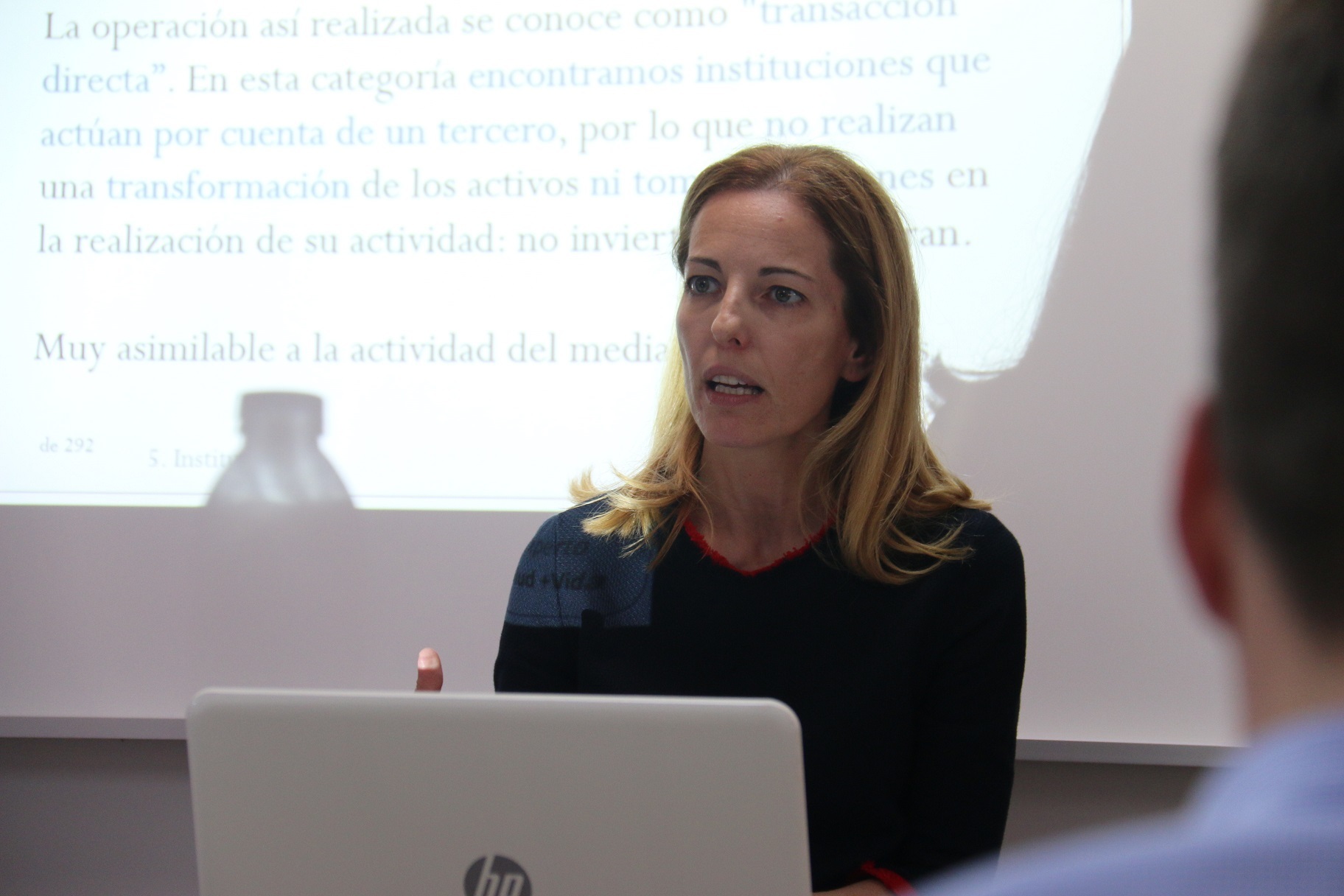 La secretaria del Colegio de Valencia, Eva Bayarri, impartió una ponencia sobre Fiscalidad y Mercados Financieros dentro del curso experto +Salud +Vida que se está llevando a cabo en la institución.