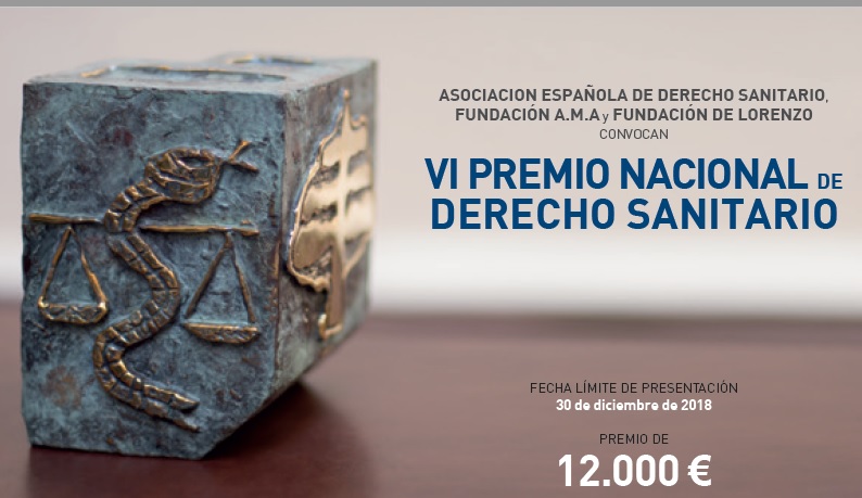 Fundación A.M.A y la Fundación De Lorenzo patrocinan la VI edición del Premio Nacional de Derecho Sanitario, con el que se pretende reconocer el esfuerzo de todos aquellos profesionales que realicen estudios de investigación sobre temas relacionados con esta especialidad. Este premio, dotado con 12.000 eruos, pretende poner de relieve cuantas contribuciones pueden llevarse a cabo en el desarrollo del Derecho Sanitario mediante la elaboración de estudios e informes, de profundidad jurídica y alta sensibilidad hacia las demandas de los ciudadanos, y también hacia el papel y responsabilidad que corresponden a los poderes públicos en este ámbito.