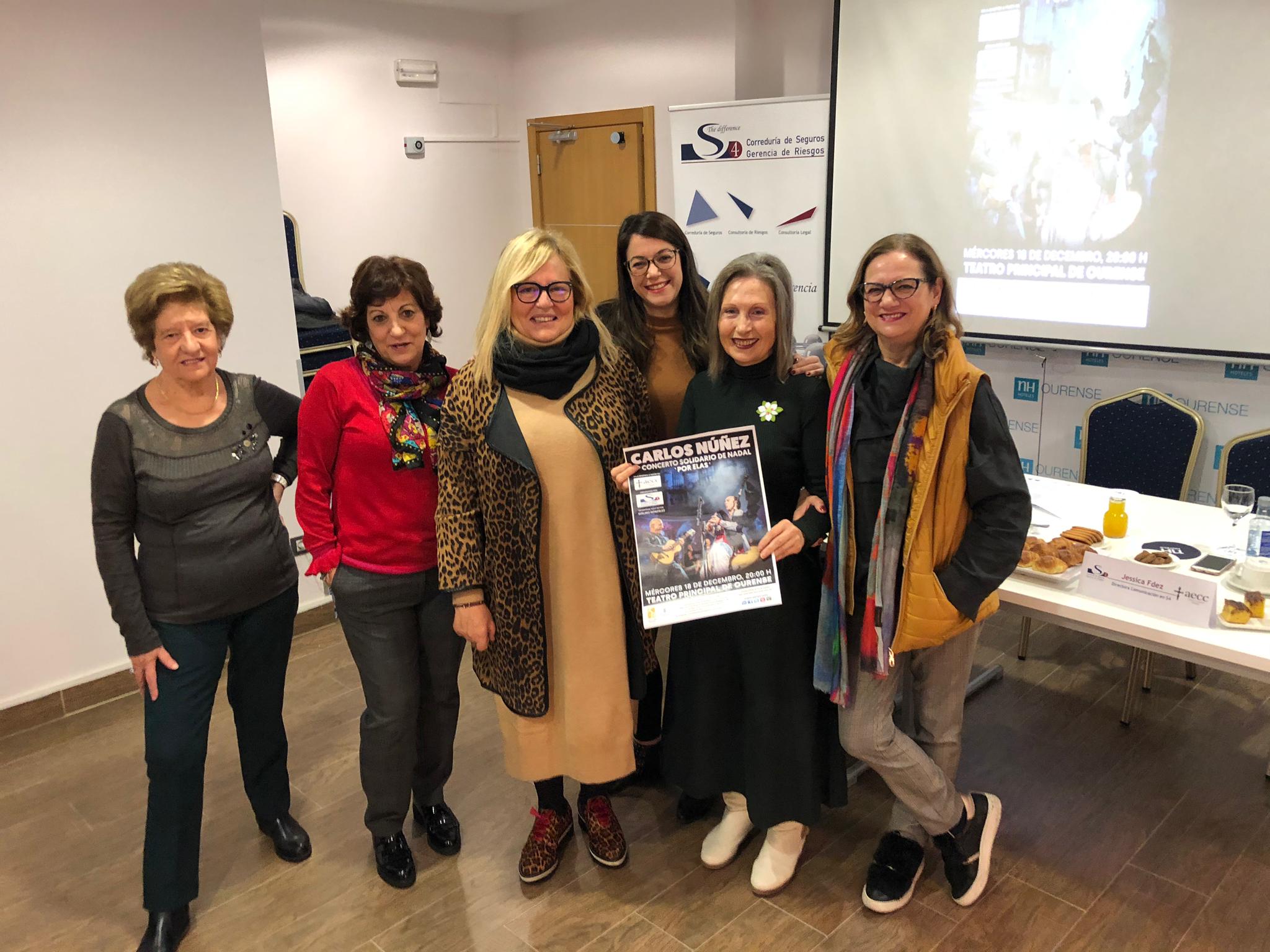 S4 ha presentado su 7º Concierto Solidario de Navidad, cuya recaudación íntegra irá destinada a la AECC de Ourense para financiar el 'Programa de ayudas económicas para situaciones de emergencia social'. Tendrá lugar el 18 de diciembre en el Teatro Principal de Ourense y contará con la actuación de Carlos Núñez. El concierto estará presentado por el actor y cómico gallego Avelino González.