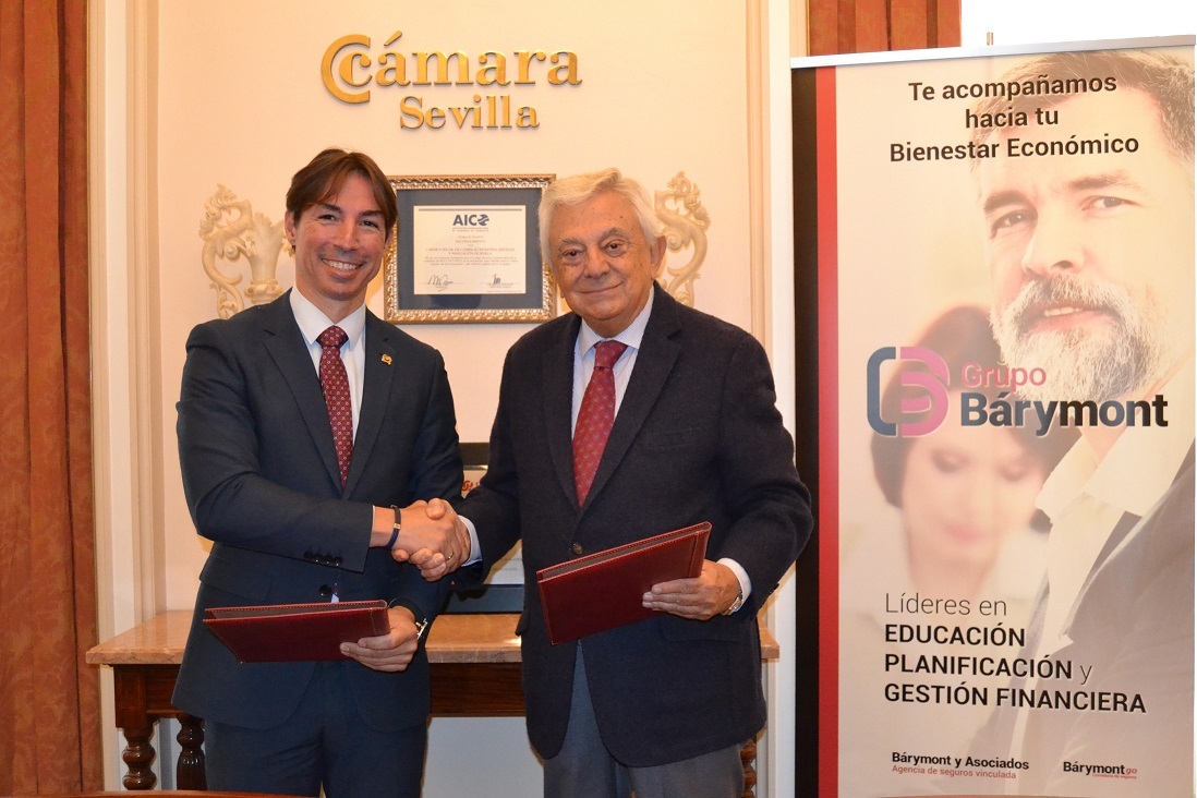La Cámara de Comercio de Sevilla y el Grupo Bárymont han firmado un acuerdo por el que pondrán a disposición de los socios un servicio de educación financiera para emprendedores. Realizarán diferentes acciones formativas con los miembros de la Cámara en las que se asesorará a futuros emprendedores con el objetivo de que puedan alcanzar sus objetivos financieros.