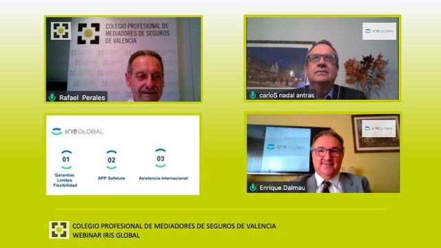 Iris Global ha ofrecido una webinar a los mediadores colegiados de Valencia sobre los seguros de Viaje, haciendo hincapié en los dirigidos a empresas y los de ocio. La ponencia ha corrido a cargo de Carlos Nadal, director comercial y negocio de Iris Global, y de Enrique Dalmau, director comercial de mediación en Levante y Baleares.