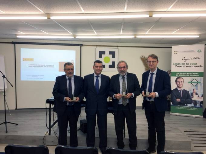 Alejandro Izuzquiza director de Operaciones del Consorcio de Compensación de Seguros, y Ricardo Blanco, delegado regional de la entidad, participaron en una jornada formativa en el Colegio de Guipuzkoa con el objetivo de acercar el CCS a la mediación.