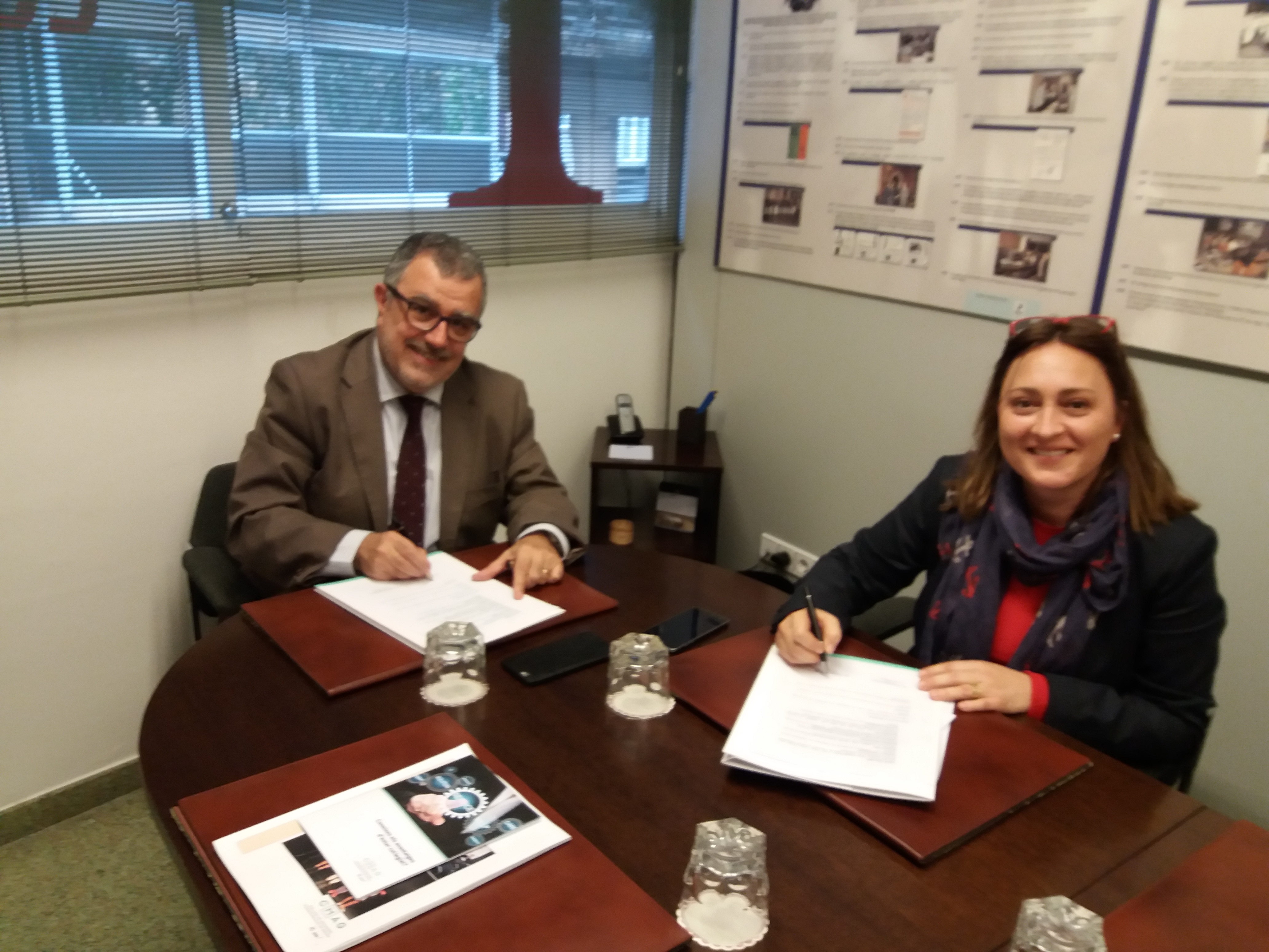 Han firmado el acuerdo el presidente del colegio, Jordi Triola, y la directora Comercial de la región de Liberty, Cristina Masgrau.