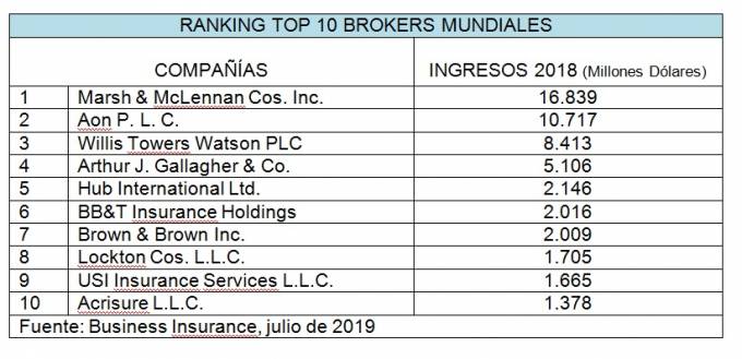 Los 10 primeros brókers del mundo incrementaron sus ingresos un 11,75% en 2018 hasta los casi 52 mil millones de dólares. El Grupo Marsh & McLennan Companies encabeza el crecimiento con un 20% y 16.839 millones de dólares en facturación, ocupando así el primer lugar entre los brókers mayores del mundo según el ránking publicado por la revista Business Insurance.