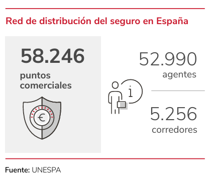 Lo demuestra la última Memoria Social del Sector Financiero que ha dado a conocer Finresp recientemente. En ese documento se muestra que la red de distribución del seguro en España alcanzó al cierre del pasado año un total de 58.246 puntos comerciales. De ellos, 52.990 corresponden a agentes (91%) y 5.256 a corredores (9%).