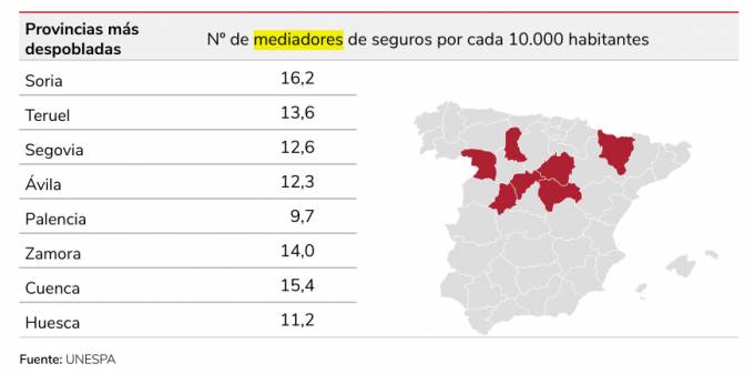 De hecho, se pone de manifiesto que la mediación de seguros es uno de los sectores que más está apoyando a la España menos poblada. El informe refleja que la industria del seguro cuenta con más mediadores por cada 10.000 habitantes en núcleos menos poblados que en los grandes núcleos de población.