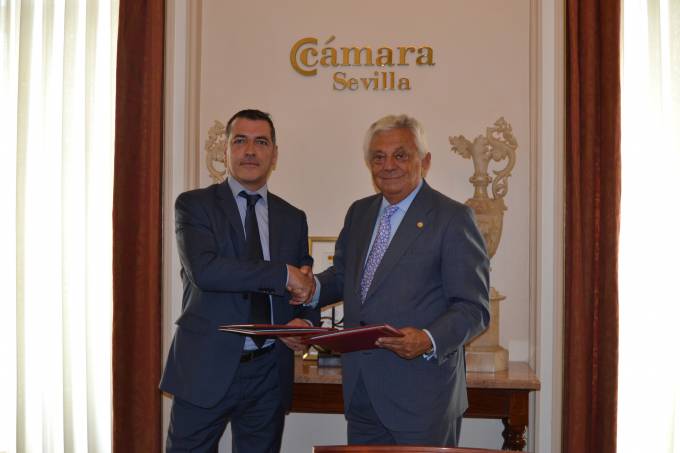 El presidente de la Cámara de Comercio de Sevilla, Francisco Herrero, y el director de Organización y Desarrollo de Meds Correduría de Seguros, David Sariol, han firmado un convenio de colaboración con el fin de ofrecer a los autónomos miembros de la Cámara de Comercio servicios de seguros de riesgo en condiciones ventajosas.