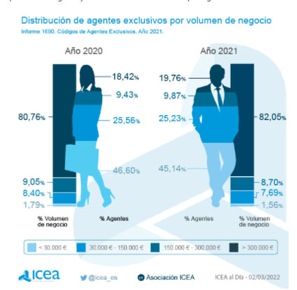 ICEA ha dado a conocer su estudio 'Códigos de Agentes Exclusivos. Estadística año 2021' donde muestra la relación entre el número de agentes exclusivos, su aportación a la totalidad del negocio y el volumen de la cartera.