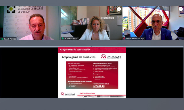 El Colegio de Mediadores de Valencia y Musaat han organizado una webinar para presentar el catálogo de productos de la entidad aseguradora para este año. El director Técnico d ela compañía, Óscar Navarro, destacó como grandes novedades el seguro de Responsabilidad Civil Profesional para una intervención concreta, así como el de Fianzas antes la Administración Pública que supone una "inmejorable garantía para concursos públicos de construcción". Subrayó que éste último es una evolución en el ramo de Caución.