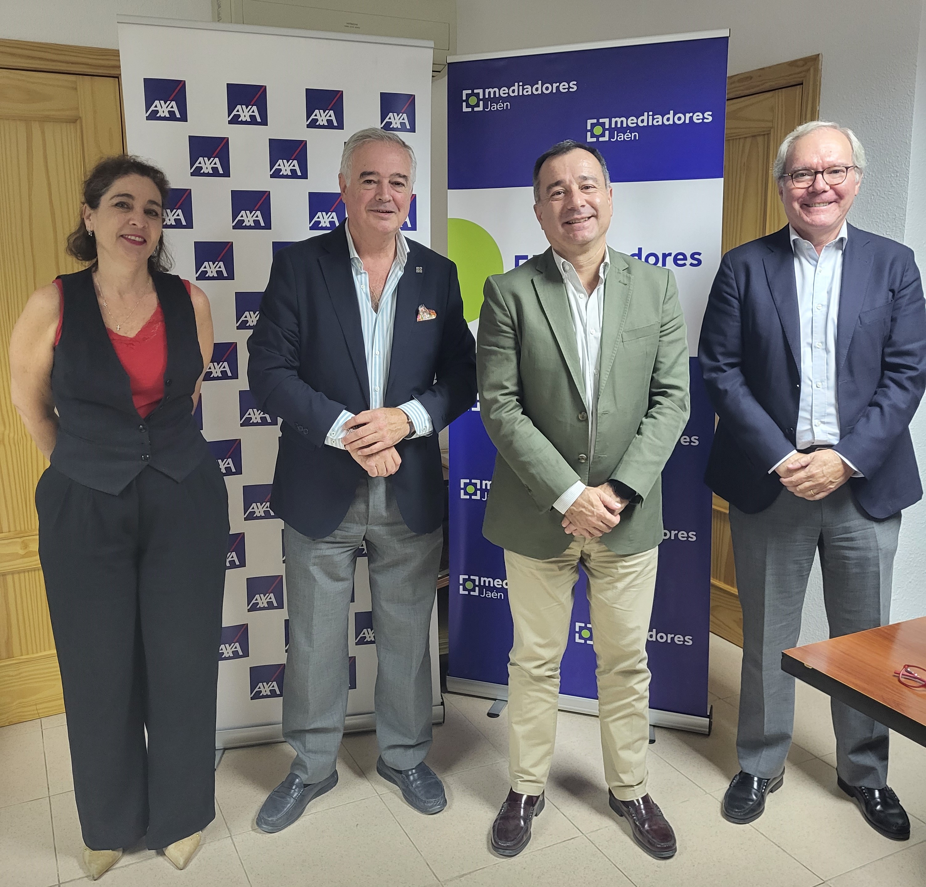 El Colegio de Jaén y AXA han firmado un nuevo acuerdo de colaboración en las sede de la institución y a la que asistieron por parte de AXA Javier Tena, director Territorial Sur y Extremadura; Rafael Raya, director Canal Corredores en Sur y Extremadura, y Rosario Vico, directora de zona Andalucía Oriental de corredores. Por parte del Colegio lo hizo su presidente Javier García.