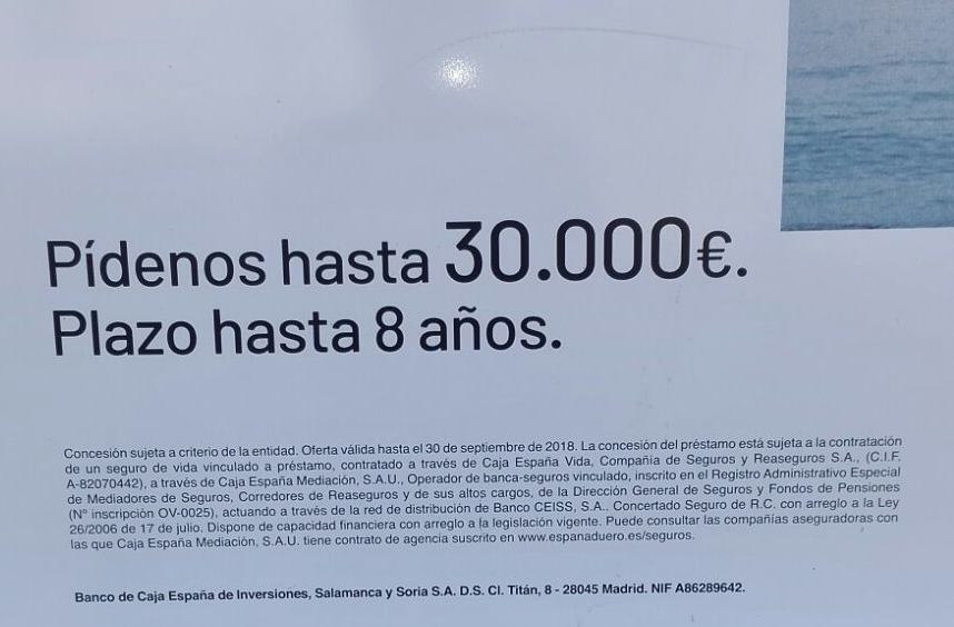 A pesar de ello todavía se pueden encontrar anuncios publicitarios como el del Banco de Caja de España de Inversiones , Salamanca y Soria, S.A. (EspañaDuero), del Grupo Unicaja, donde de manera directa indica que su oferta para conseguir un crédito de 30.000 euros debe ligarse la operación "a la contratación de un seguro de Vida vinculado" por un importe de 498,04 euros.