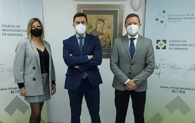 La firma del convenio contó con la presencia del director de la sucursal de Granada de Plus Ultra Seguros, Raúl Molina, del presidente del Colegio de de Granada, Genaro Sánchez, y de la vicepresidenta del Colegio, Laura Molero.
