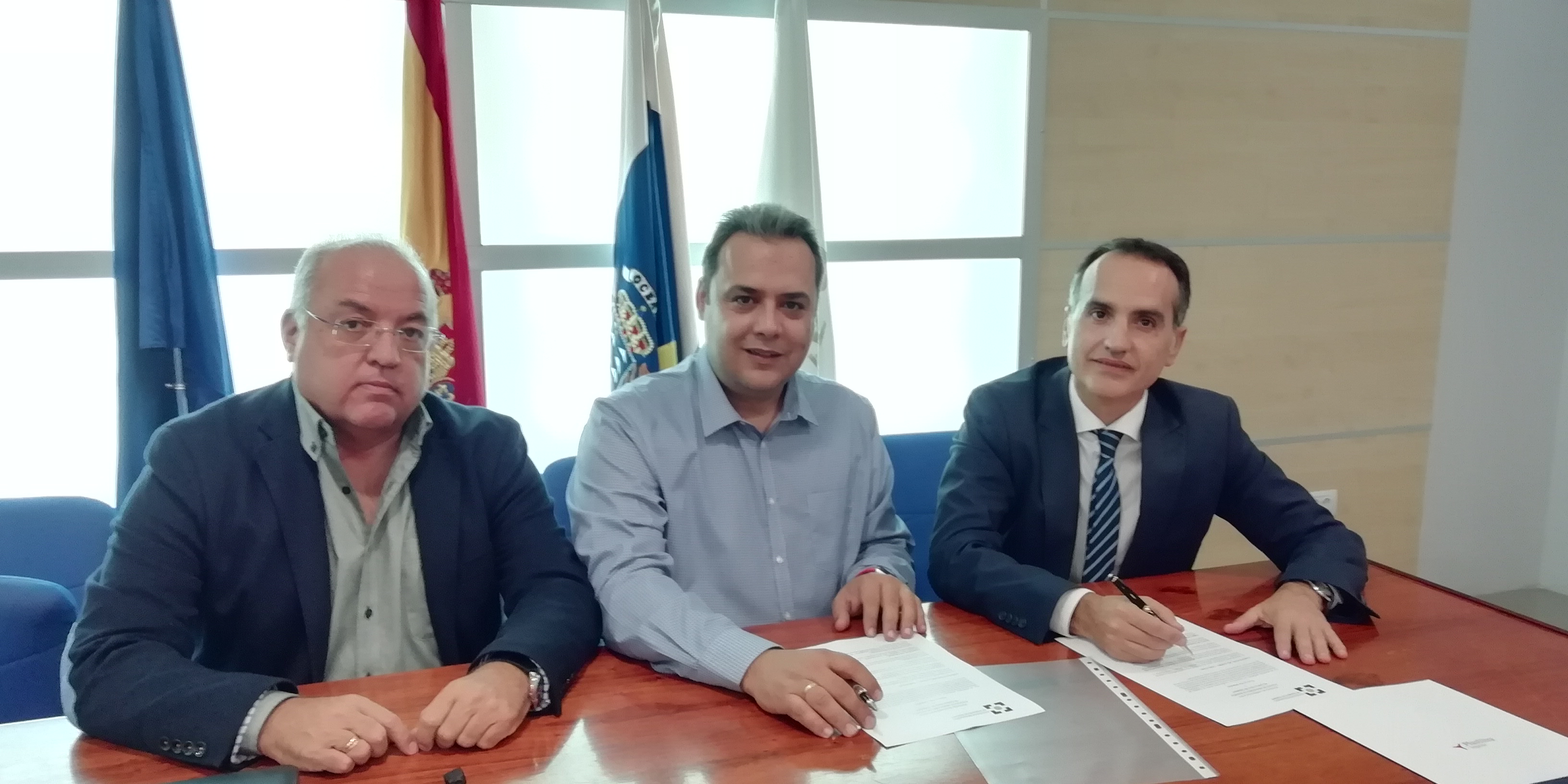 La firma del convenio, celebrada en las instalaciones de la institución, contó con la presencia del director territorial Centro Sur corredores de Plus Ultra Seguros, David Gil; el director de la sucursal de la compañía en Tenerife, Luis Álvarez, y del presidente del Colegio de Tenerife, Francisco Javier Pérez.